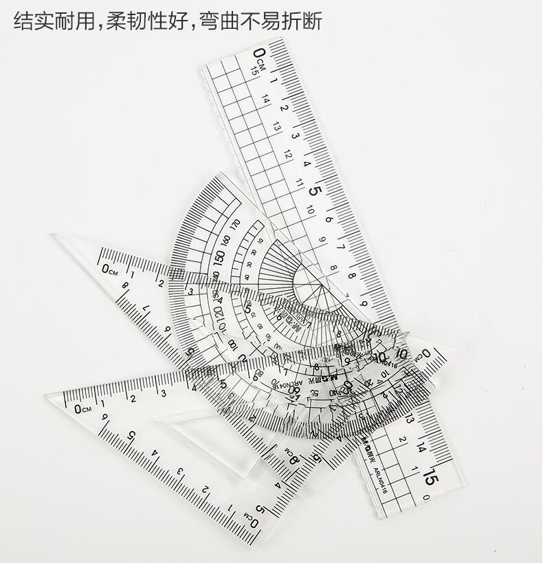 晨光文具 透明套尺 亞克力四件套15cm直尺三角板量角器學生用考試繪畫專用制圖測量隨身便攜多功能幾何工具