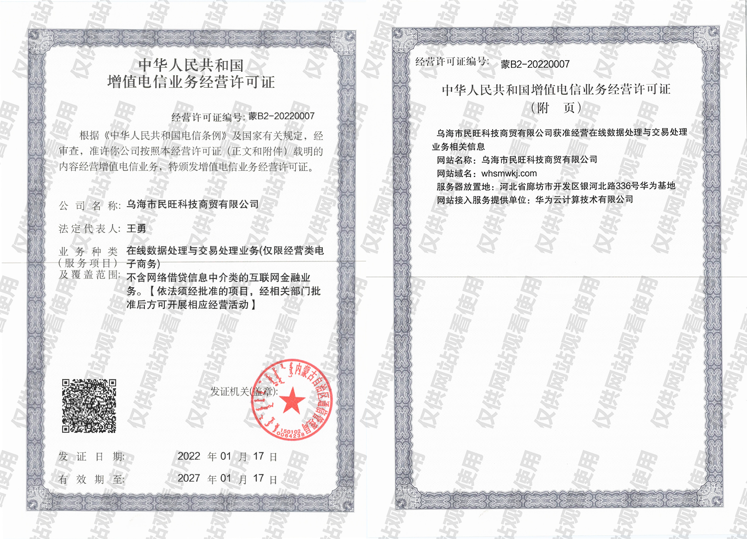 电信增值许可证 蒙B2-20220007